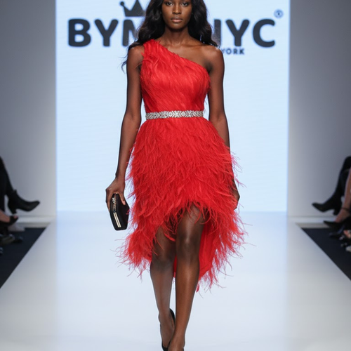 Mini vestido asimetrico de plumas rojo BYMANYC ® New York
